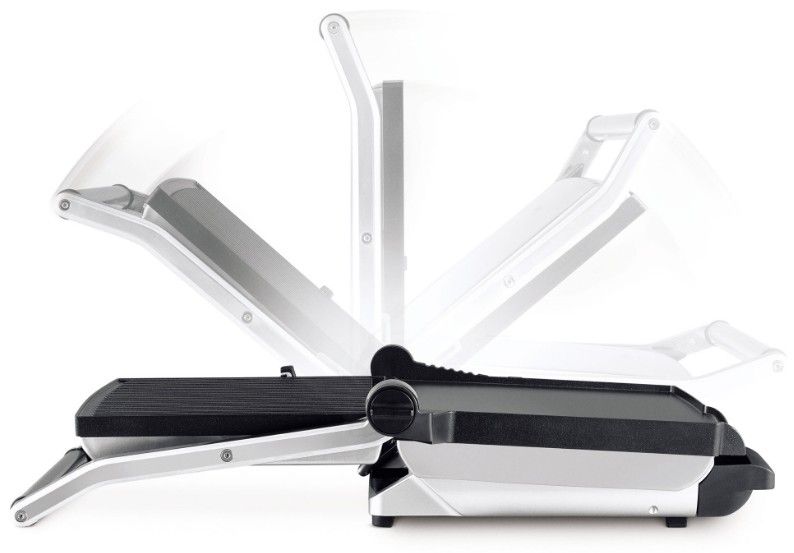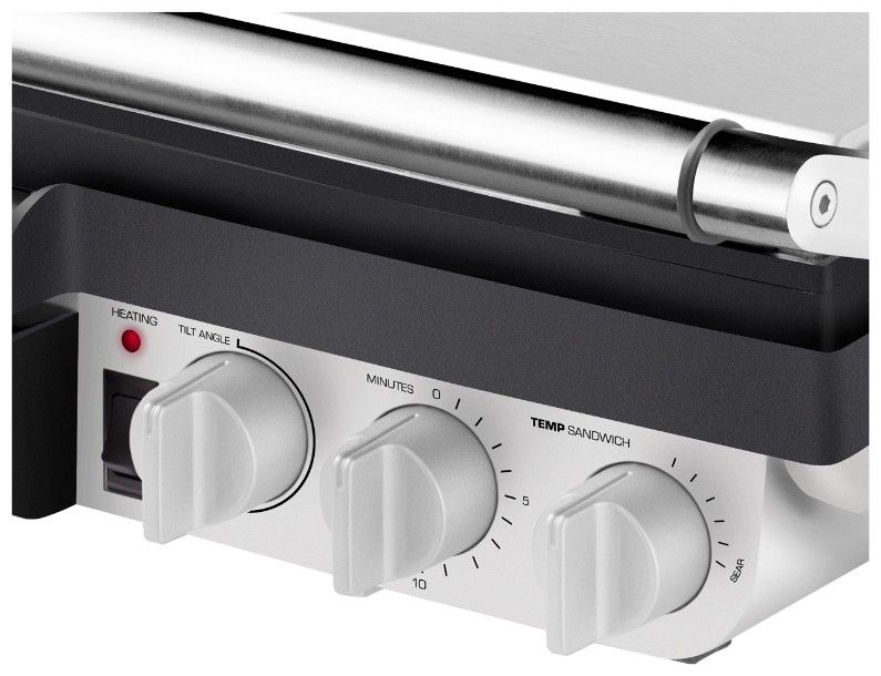 Díky unikátní konstrukci proměníte tento kontaktní gril na otevřený barbecue gril doslova během vteřiny. Při grilování jistě oceníte i nastavení výšky horní desky a sklonu spodní desky, stejně jako regulaci teploty od 180 do 220 °C a 15minutový časovač. Sendviče tak budou správně zapečené, zelenina zůstane křupavá steaky tak šťavnaté…