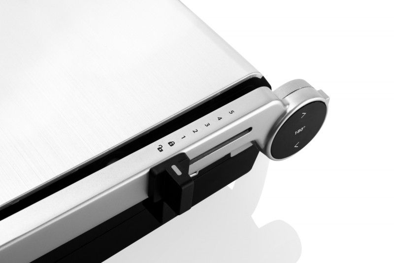 Mezi vybavení kontaktního grilu patří snadno odnímatelné grilovací desky s možností jejich otevření na 90° a 180°, plynulá regulace teploty v rozsahu 80–240 °C a odnímatelná odkapní nádoba o objemu 0,2 l. Víko nerezového grilu je možno uzamknout v uzavřené poloze. Gril vám umožní si vybrat ze 6 automatických programů a nastavení časovače ohřevu (možnost nastavení od 1 do 60 minut). Vše můžete pohodlně navolit na přehledném dotykovém panelu.