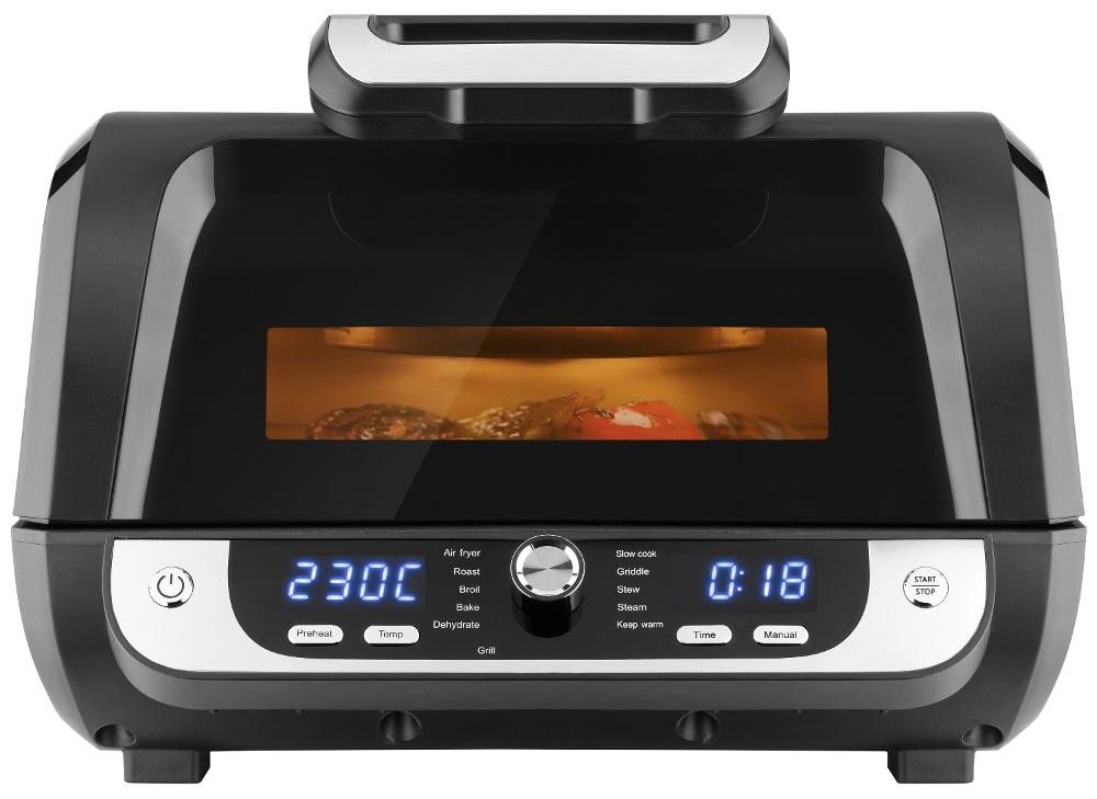 Široký teplotní rozsah od 50 do 230°C, možnost přesně nastavit teplotu a délku přípravy v manuálním nastavení vám umožní připravit rozmanitá jídla podle receptu. Nebo můžete využít 12 automatických funkcí včetně vaření v páře nebo sušičky potravin. Vše nastavíte pohodlně na velkém a přehledném LED displeji. Díky vnitřnímu osvětlení a velkému průhledu můžete sledovat krok po kroku průběh přípravy. S vařením různých jídel vám pomůže také široké příslušenství, které je součástí balení.