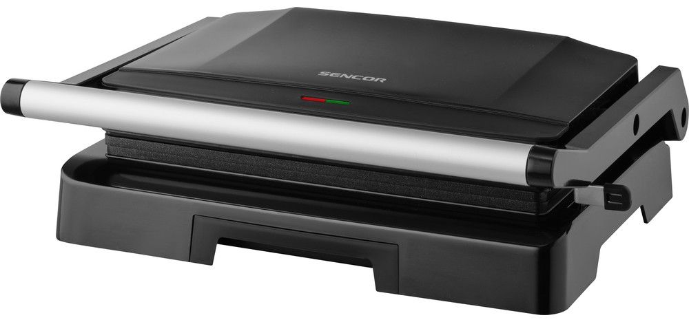 Obsluha kompaktního grilu Sencor je velmi jednoduchá a pohodlná. Na horním krytu naleznete světelnou signalizaci, kdy červená kontrolka oznamuje, že gril je zapnutý, a zelené světlo vás upozorní, když je gril nahřátý na ideální teplotu. V ten okamžik lze odstartovat grilování a rozmístit potraviny na pečicí desky.