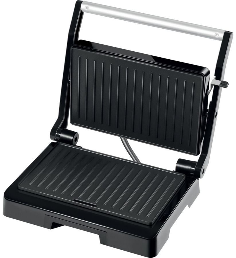 Předností grilu je nepřilnavá povrchová úprava grilovacích desek o rozměru 23x14,5 cm. Jídlo se nepřipálí a vaření je zdravější, bez nutnosti přidávat olej navíc. Horní víko lze využívat v zavřené poloze, tím pádem horký povrch desek působí na potravinu z obou stran a příprava masa nebo zapečené bagety je velmi rychlá a efektivní.