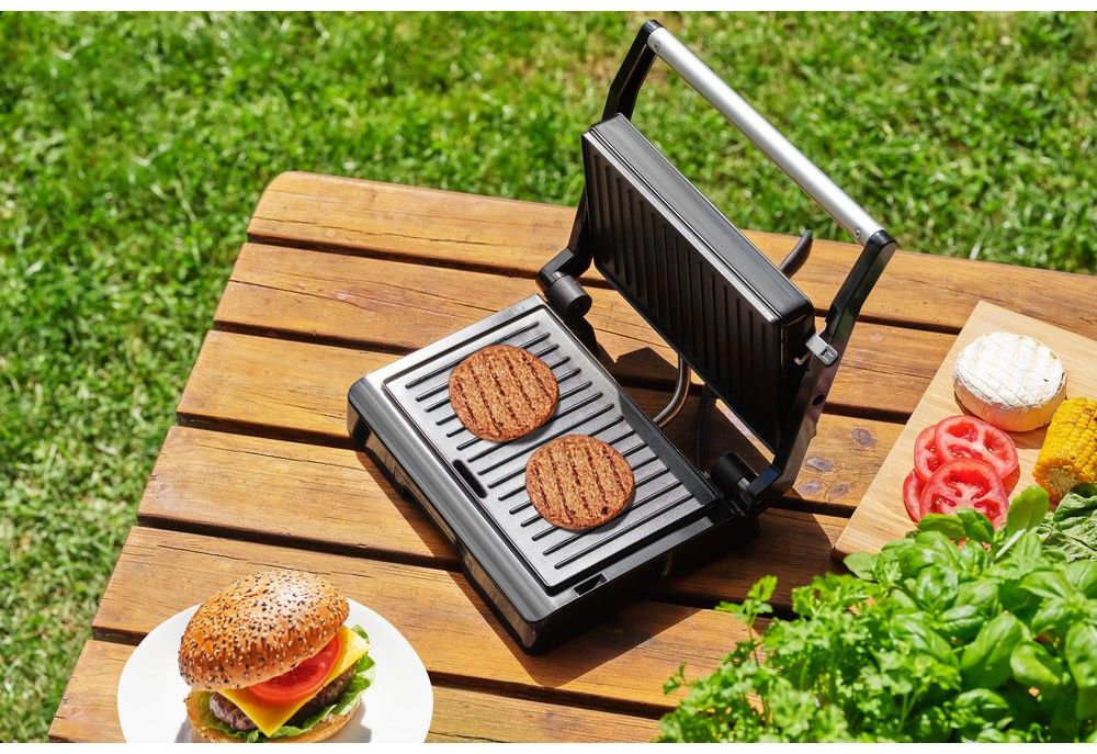 Kontaktní elektrický gril splňuje podmínky zdravého grilování (možnost grilovat bez přidání oleje).