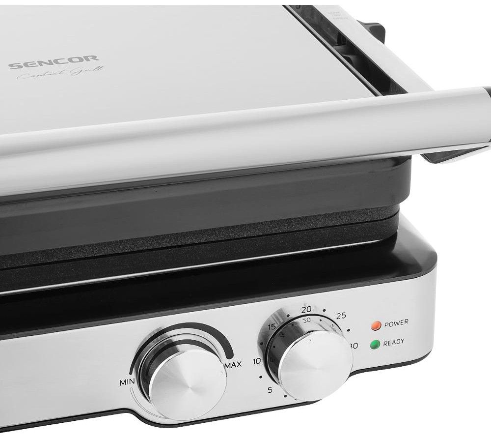 Sencor vybavil gril praktickým termostatem, kterým regulujete teplotu při grilování. Je na vás, jaký stupeň propečení vám zrovna vyhovuje. S funkcí časovače se dá jednoduše kontrolovat doba přípravy pokrmů. Po uplynutí vámi požadované doby vás zvuková signalizace upozorní, že je jídlo hotové.