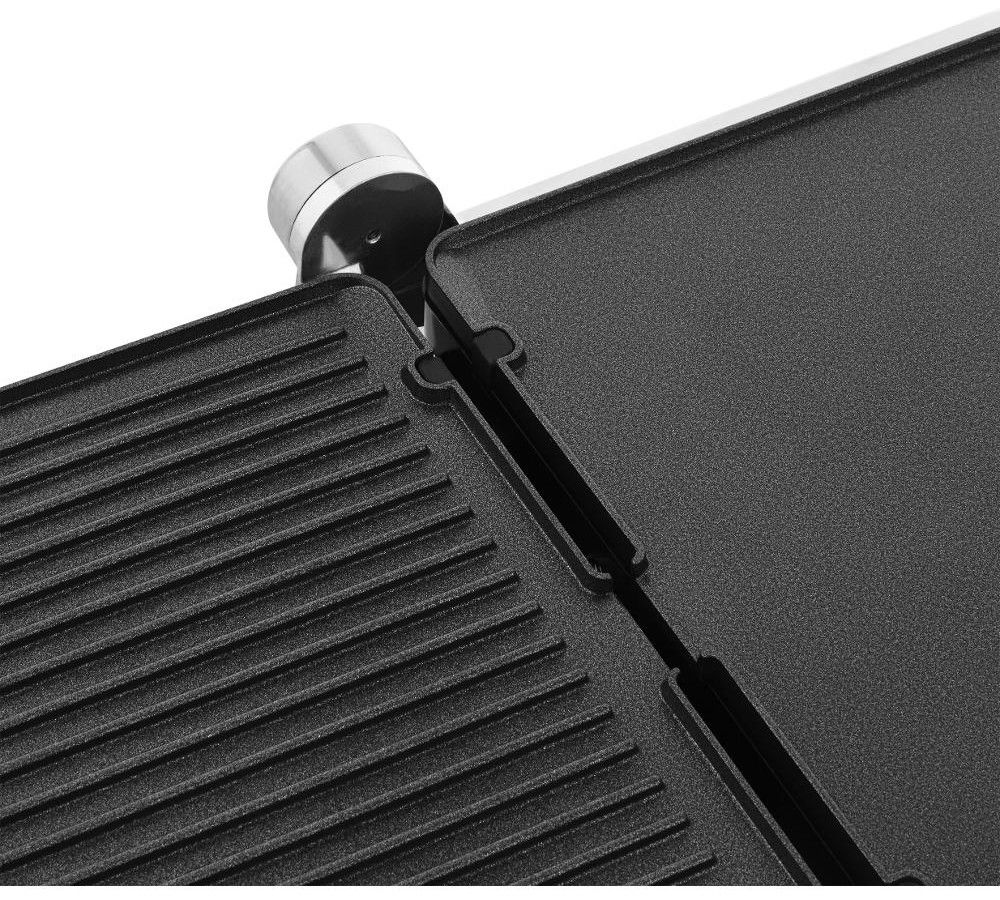 - 3 provozní polohy horní grilovací desky (uzavřená/otevřená 90°/otevřený gril 180°)