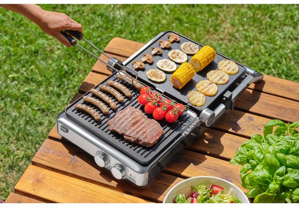 - Gril lze otevřít do roviny a grilovat na dvojnásobné ploše