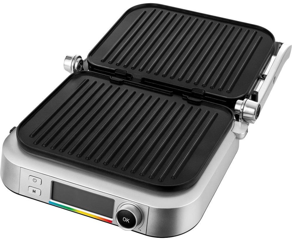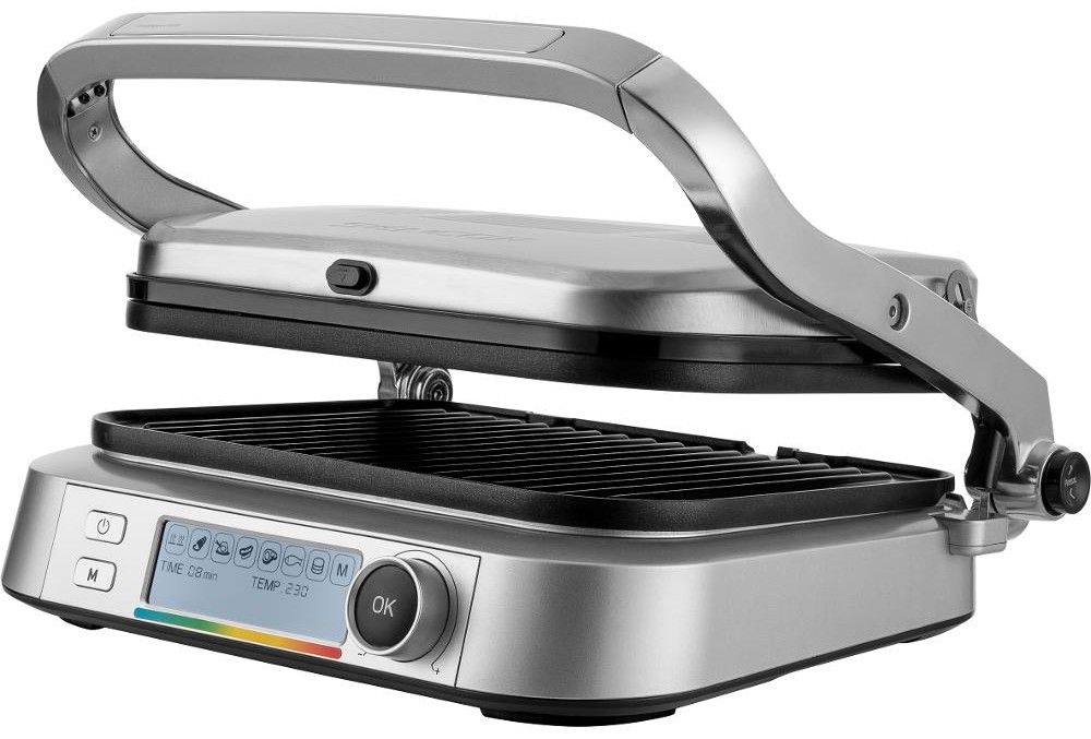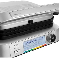 Kontaktní víceúčelový elektrický gril s možností grilování bez nutnosti přidávání oleje a LCD displejem.