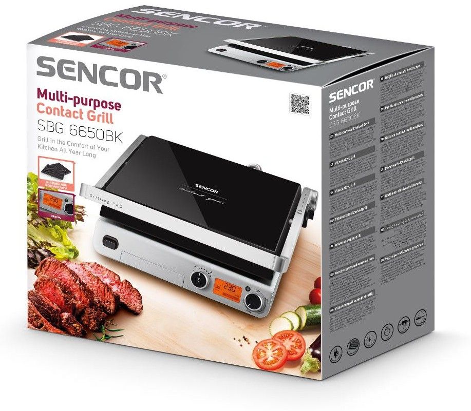 S víceúčelovým kontaktním grilem Sencor SBG 6650BK se stanete profesionálním grilmanem za každé situace i ročního období. Pyšním se exkluzivním skleněným designem, nepřilnavými plochami pro ještě zdravější grilování, třemi provozními polohami a jednoduchým ovládáním. Krom toho vás potěším i možností nastavit si teplotu a dobu grilování přesně podle potřeb jednotlivých pokrmů i vaší chuti. Sencor mne navrhnul tak, abych se pohodlně čistil a lehce přenášel.