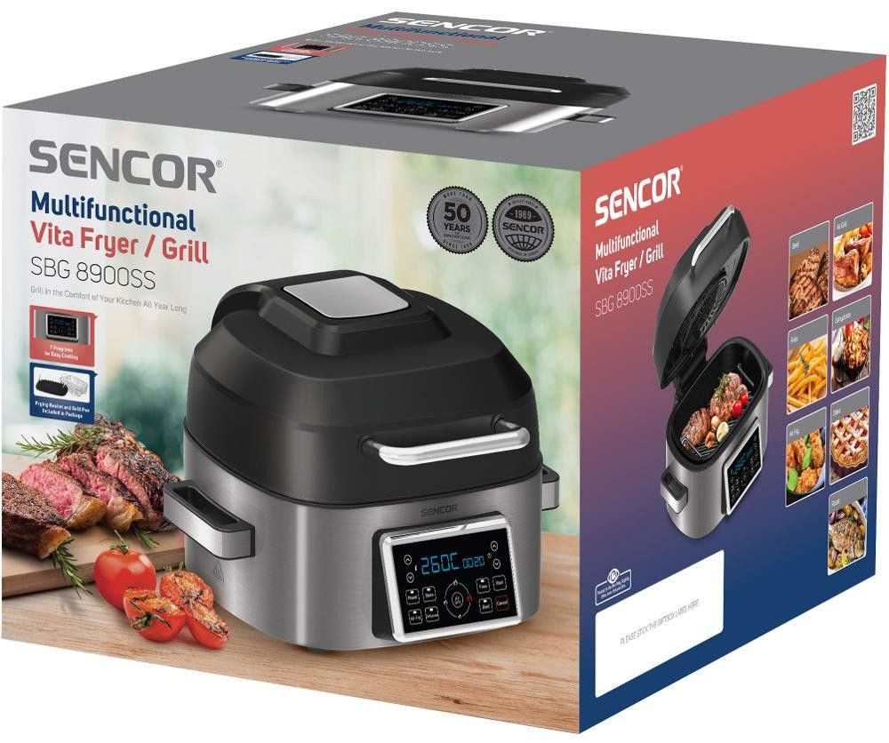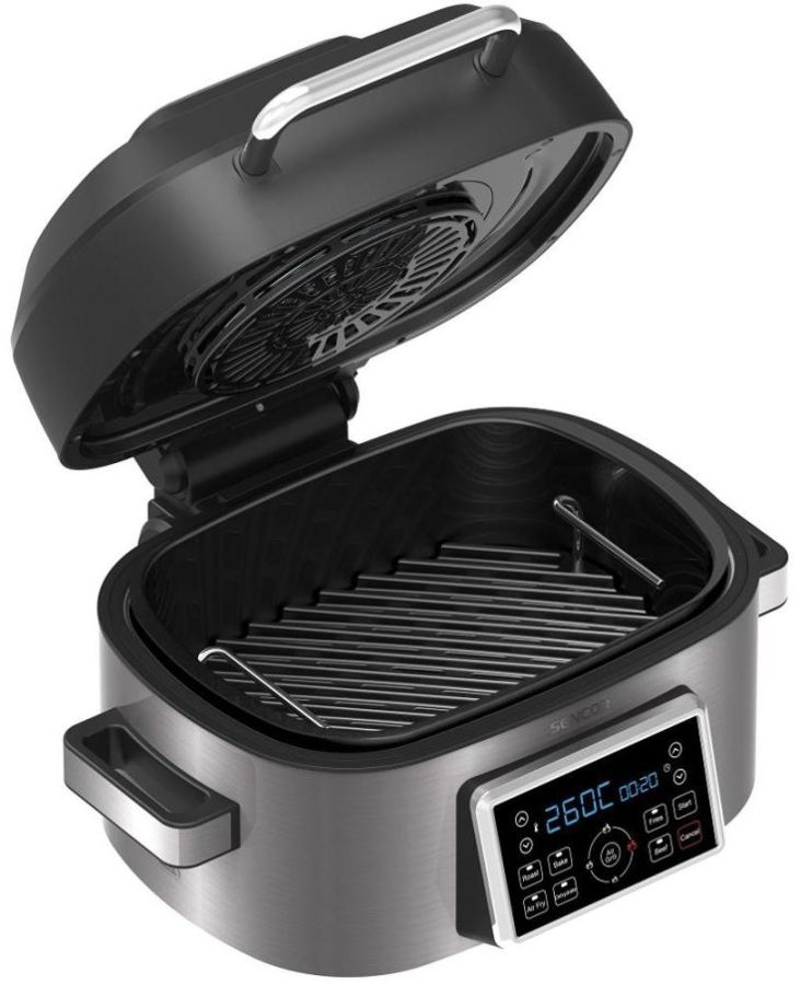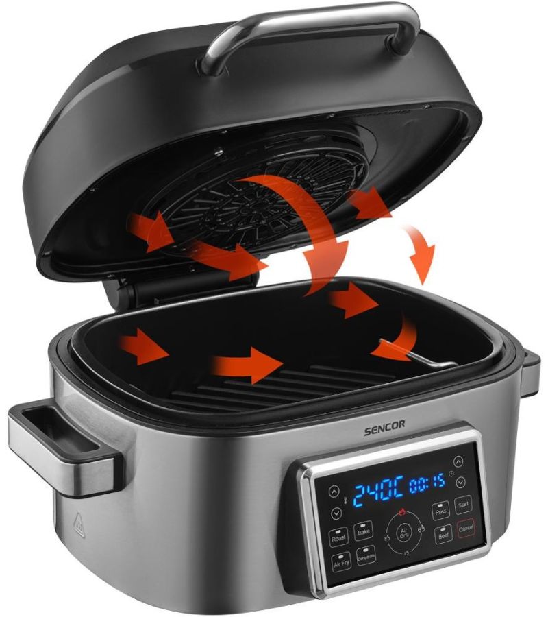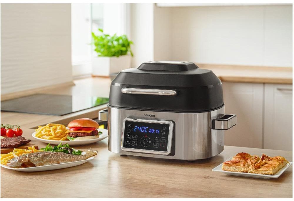 Milujete pokrmy z grilu, rádi pečete nebo byste si chtěli dopřát zdravější verzi smaženého řízku? Horkovzdušný gril Sencor SBG 8900SS vám s přípravou zdravých a chutných jídel lehce pomůže. Grilovat a smažit můžete s minimem tuku díky cirkulaci horkého vzduchu. Příjemně jednoduché ovládání s LED displejem nabízí 7 přednastavených režimů například na pečení, grilování a sušení různých druhů surovin a připravíte s ním neodolatelně křupavé hranolky. Na přístroji si můžete v každém programu libovolně nastavovat teplotu a čas. Výkon grilu je 1 660 W a během chvíle můžete regulovat teplotu v rozmezí 40 °C až 265 °C. Po ukončení vaření se sám automaticky vypne.