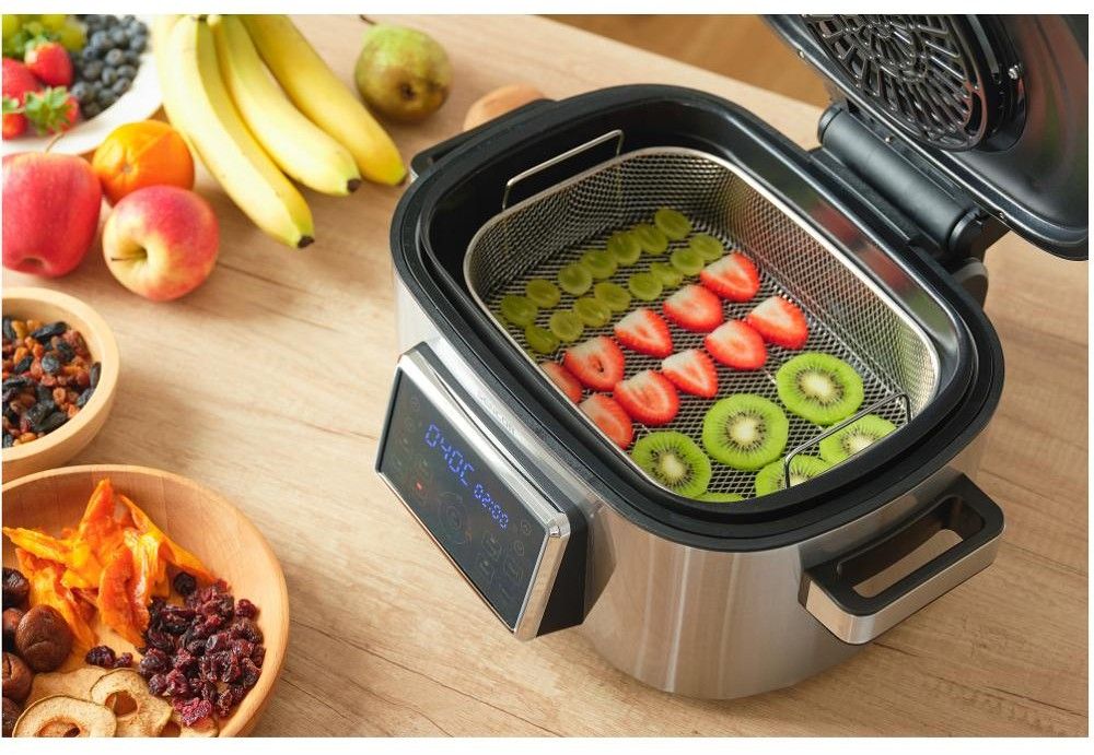 Tento přístroj vám nabídne opravdu širokou škálu možností přípravy jídel, a to díky skvělé variabilitě nastavení teploty od 40 do 265 °C. V programu Dehydrator si usušíte různé bylinky či ovoce již za 2 hodiny. Díky programu Fries v grilovacím koši vykouzlíte bramborové hranolky i jejich různé zeleninové varianty. Program Beef poslouží k pečení masa, především pak hovězího. Roast pak výborně opeče různé klobásky a uzeniny. Air Fry nahradí funkci horkovzdušné fritézy a díky programu Bake upečete například výborný ovocný koláč.