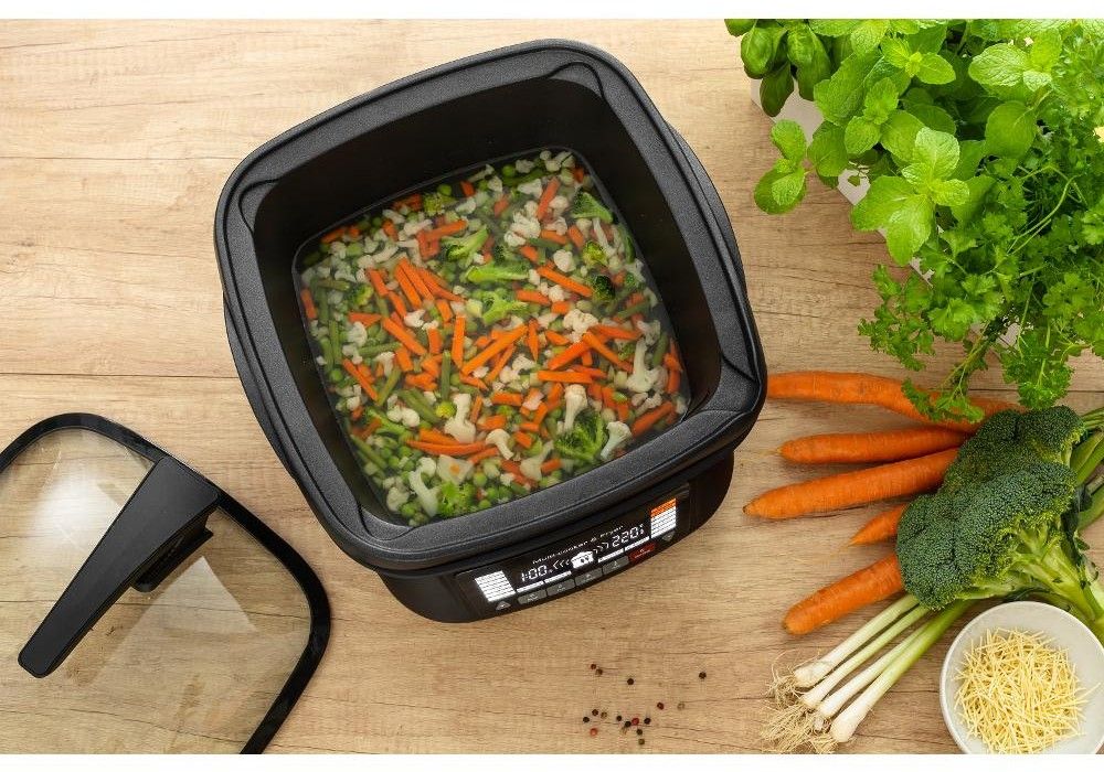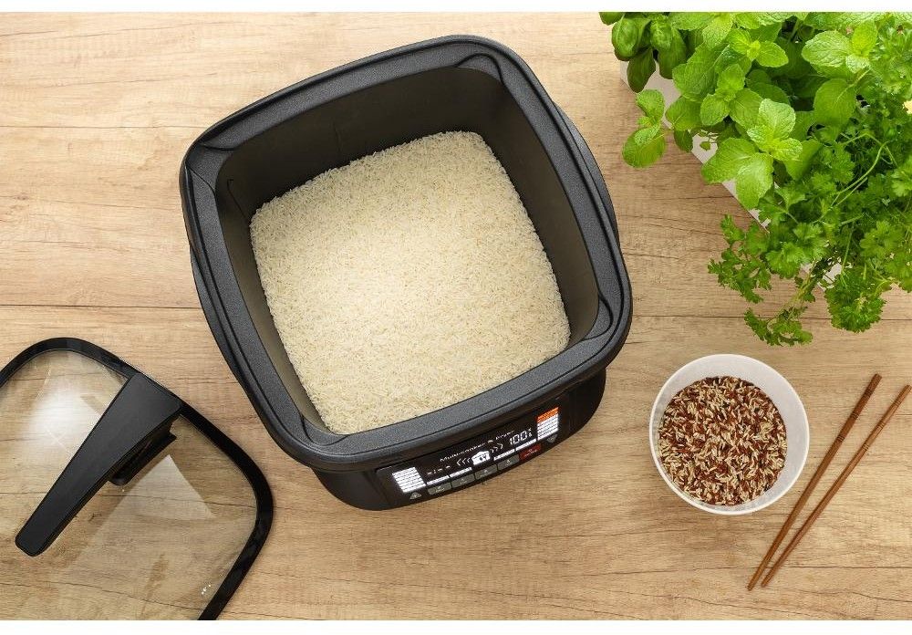 Dokážu připravit jídlo až pro 10 lidí. Jsem vybaven kvalitní varnou nádobou, která se chlubí objemem 4,8 l i pro početnější domácnost. Varná nádoba je velice kvalitní, její vnitřek je potažen vrstvou, která je nepřilnavá, a to pro všechny nabízené tepelné úpravy. Suroviny stačí jen nakrájet, vložit do hrnce, zvolit režim a je to!
