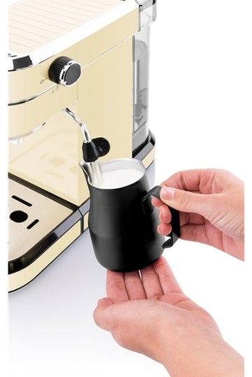 Tento elegantní kávovar je určen pro mletou kávu. Ta se díky filtru s přetlakovými nerezovými sítky s dvojitým dnem a tlaku čerpadla až 20 barů během pár okamžiků promění v lahodné espresso jako od profesionálního baristy. Jeho finální podobu můžete tzv. prodloužit pomocí funkce horké vody nebo zjemnit mléčnou mikropěnou, kterou hravě vykouzlíte šikovně umístěnou parní tryskou. Nic tak nebrání tomu, abyste si dopřáli cappuccino či café latté, kdykoliv na ně dostane chuť.