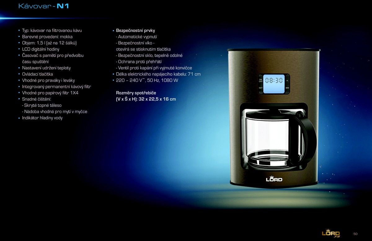 Kávovar na filtrovanou kávu a objemem 1,5 l (až na 12 šálků).