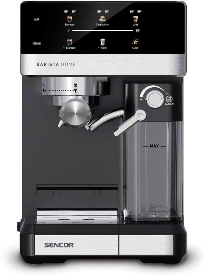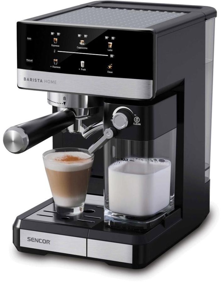 - Odnímatelná průhledná nádržka na mléko o objemu 500 ml s odnímatelným zařízením na napěnění mléka