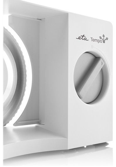 Pomocí otočného regulátoru plynule nastavíte tloušťku řezu od 0 do 20 mm. Elektrický kráječ ETA Tempo je vybavený bezpečnostním spínačem, díky němuž je obsluha bezpečná. Protiskluzové nožky pak zajistí stabilitu na pracovní ploše během krájení.