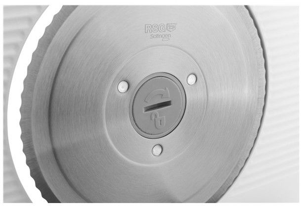 Kvalitní nerezový nůž značky Solingen RSG s vroubkovaným ostřím je snadno odnímatelný, a tak je jeho údržba velmi jednoduchá. Pomocí otočného regulátoru plynule nastavíte tloušťku řezu od 0 do 15 mm. Součástí balení je také plastový tác na zachytávání krájených surovin. Protiskluzové nožky pak zajistí stabilitu na pracovní ploše během krájení.