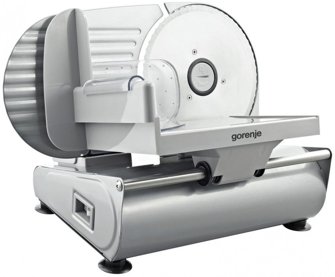 Elektrický kráječ potravin s nerezovou čepelí, kotoučem o průměru 19mm a tloušťkou řezu 0-15mm.