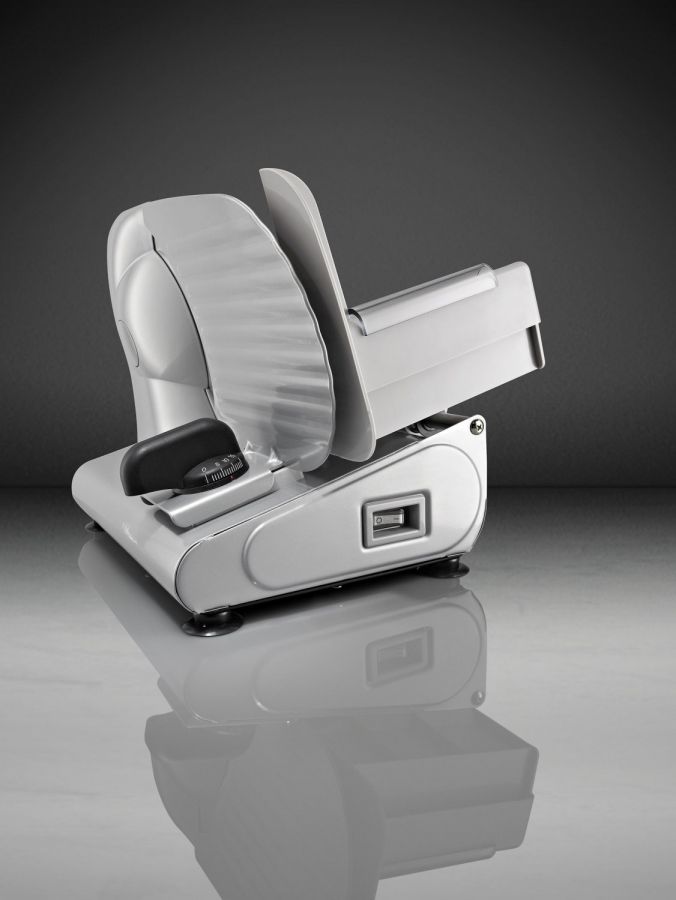 Rychle a jednoduše nakrájejte maso, chléb, ovoce a zeleninu. Pomocí ovladače tloušťky plátku nastavte tloušťku plátku mezi 1 a 15 milimetry. Čepel z nerezové oceli zajišťuje hladké a přesné krájení.