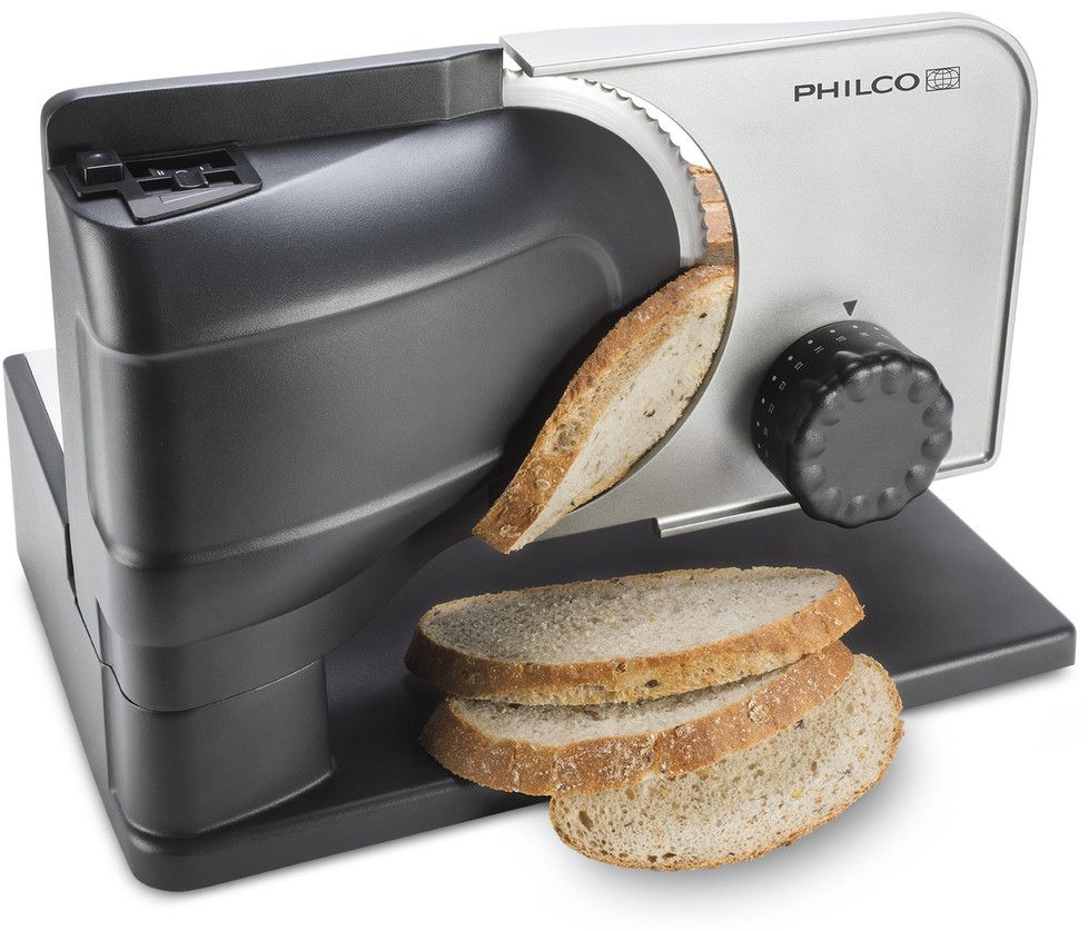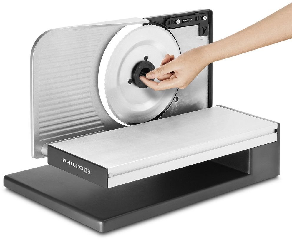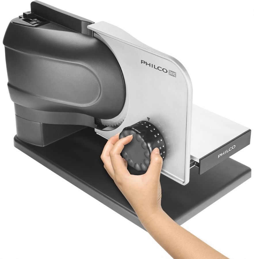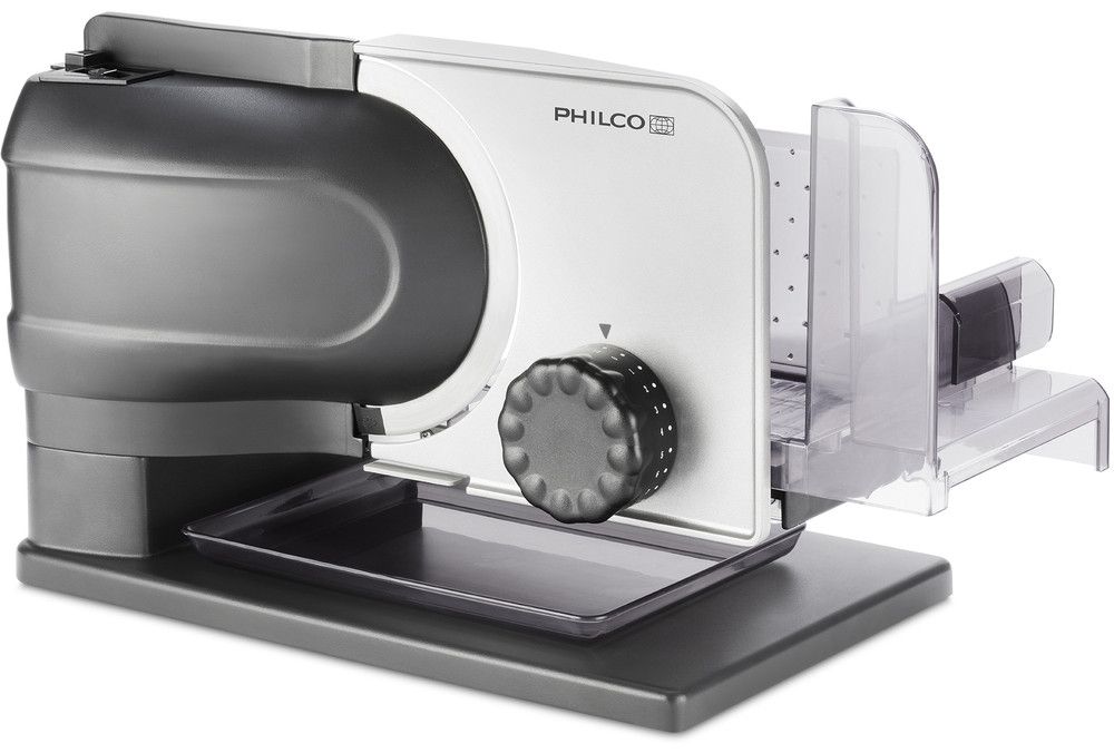 Všestranný pomocník při krájení plátků různých potravin. To je kráječ značky Philco PHFS 6100. Jeho výjimečnost je postavena na 3 zásadních vlastnostech. První a velmi důležitou vlastností je jeho pevnost a stabilita, díky které bude krájet plátky od začátku do konce ve stejné tloušťce a to klidně 1 mm. Za touto vlastností stojí zejména použité odolné kovové materiály a perfektní dílenské zpracování. Druhou vlastností je ovládání rychlosti otáček. Pomalejší otáčky se Vám zejména vyplatí při krájení měkkých potravin, jako je například šunka, kdy vám pomůže docílit velmi tenkých plátků bez potrhání. Třetí vlastností je možnost výměny nože. Na výběr budete mít nůž s vlnkovým vzorem, který je perfektní na krájení pečiva nebo hladký nůž, který oceníte zejména při použití na uzeniny a sýry. Oba nože jsou vyrobeny z kvalitní tvrzené ušlechtilé oceli a měli byste být opatrní při manipulaci s nimi, protože jsou velmi ostré a mohli byste se snadno pořezat.