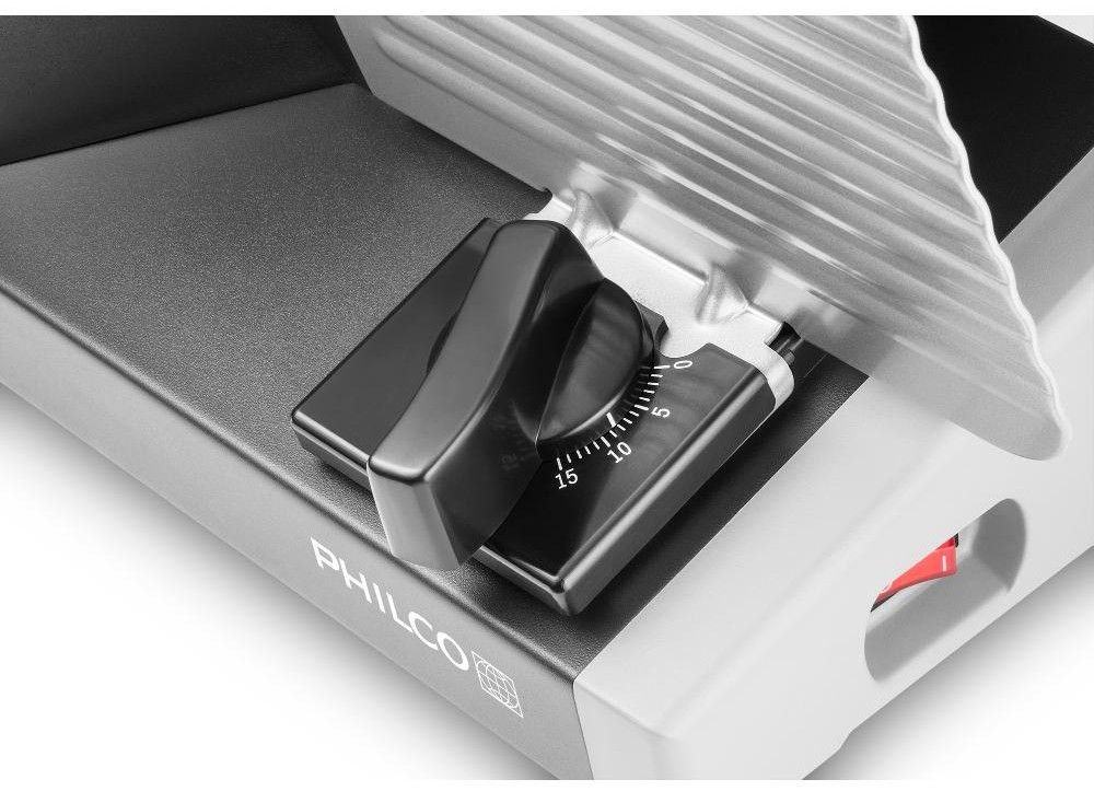 Od kuchyňského kráječe Philco PHFS 8010 očekávejte preciznost řezu, pohodlnou manipulaci a bezpečnost. Přesně to jsou hlavní přednosti našeho elektrického kráječe. Celokovové tělo, perfektní dílenské zpracování, přesné nastavení šířky řezu od 0 - 15 mm a stabilita – proto se stane užitečným pomocníkem ve vaší domácnosti.