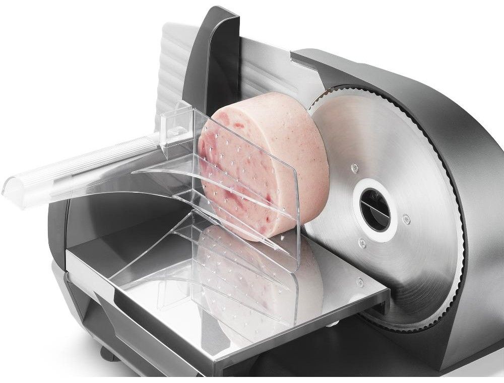 Kráječ potravin má celokovové tělo s velmi ostrým nožem z ušlechtilé oceli, podavač s chráničem prstů, přísavky pro zvýšenou stabilitu, stálý chod a šířku řezu 0 - 15 mm.