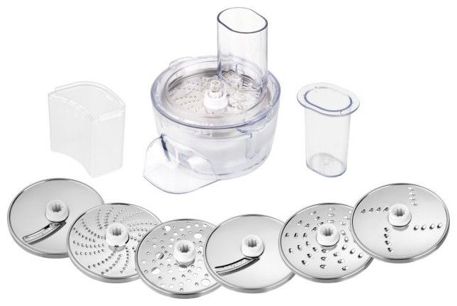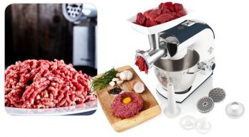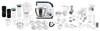- Mlýnek na maso o průměru 62 mm (4 velikosti mlecích destiček, nástavec na výrobu uzenin, nástavec na výrobu Kebbe, tvořítko na cukroví, pěchovadlo, násypka, uvolňovací klíč)