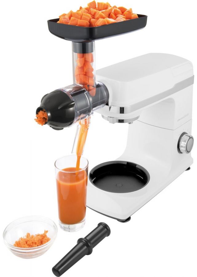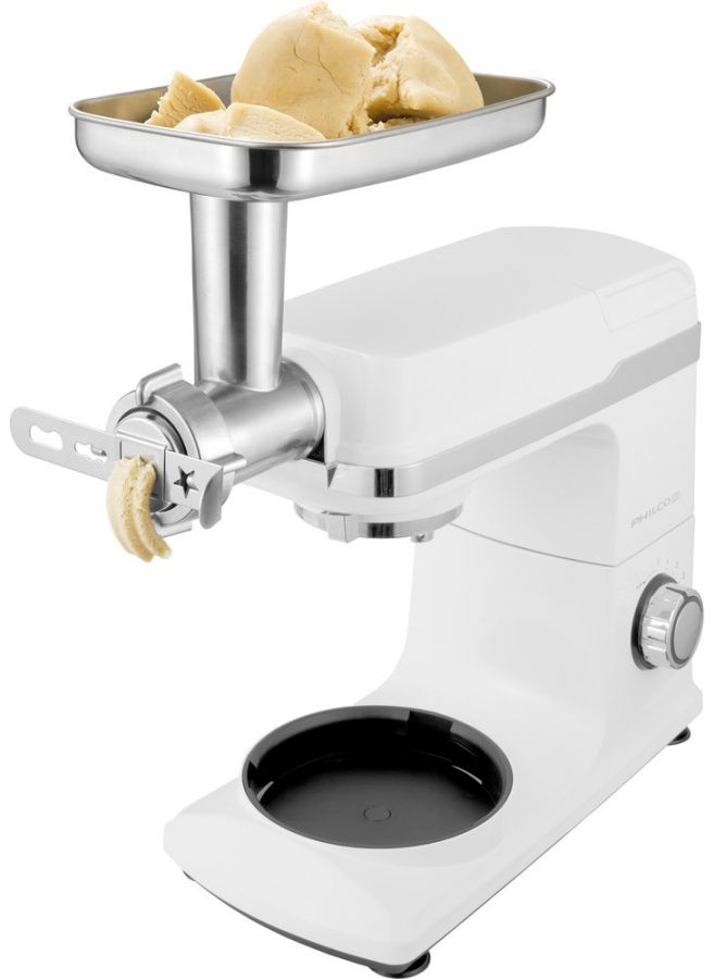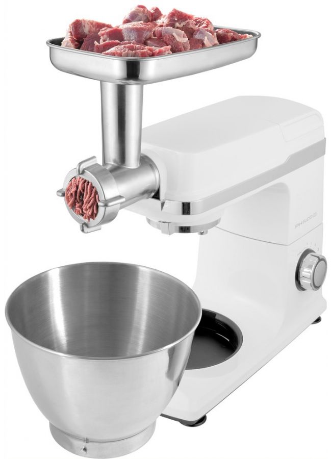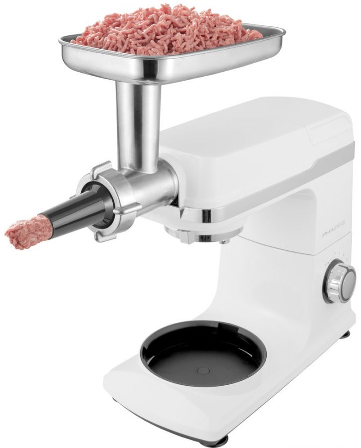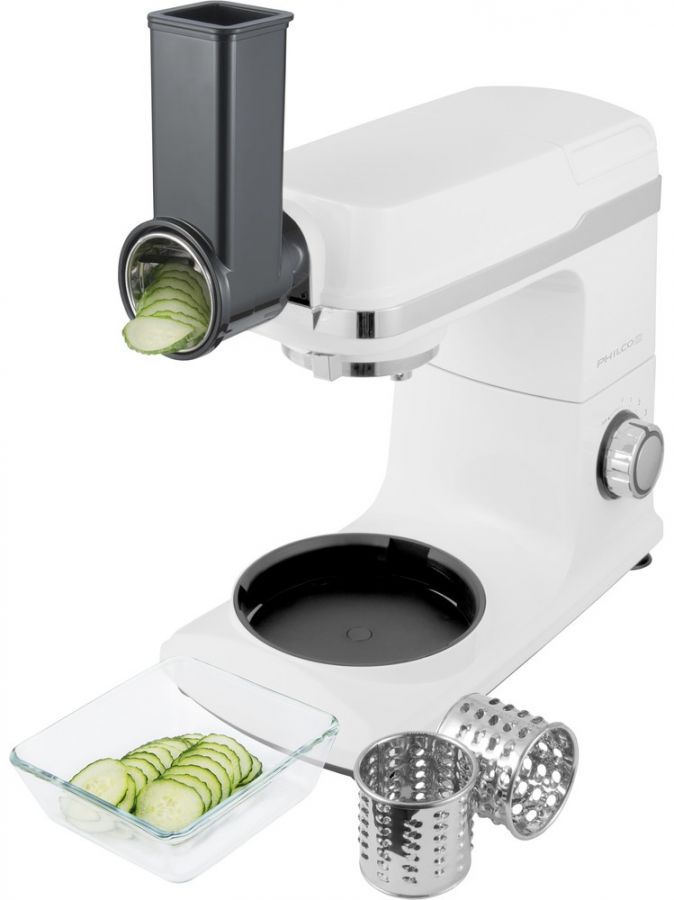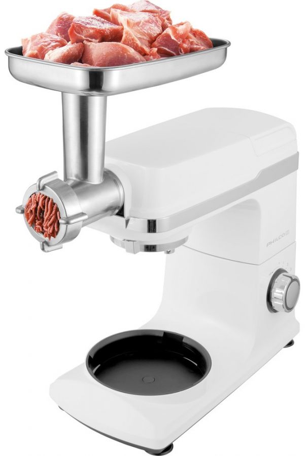 Extrémně výkonný a všestranný kuchyňský robot Philco PHSM 9000 nahradí celý arzenál kuchyňských spotřebičů. Robot šlehá, hněte, míchá, mixuje, mele maso, strouhá, odšťavňuje, tvaruje cukroví, plní klobásy a ještě mnohem víc.