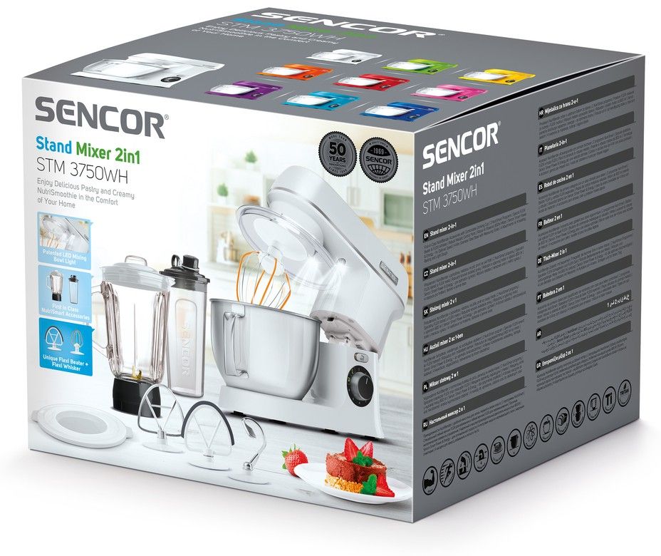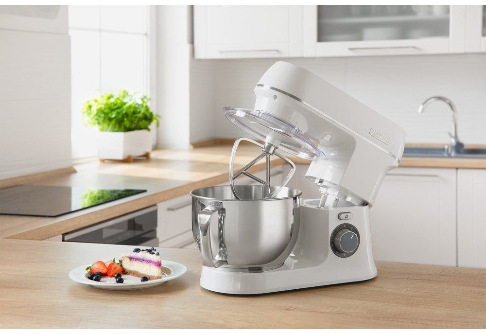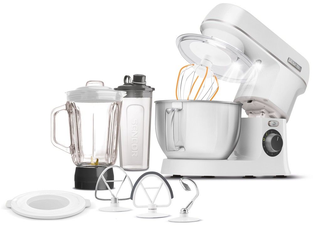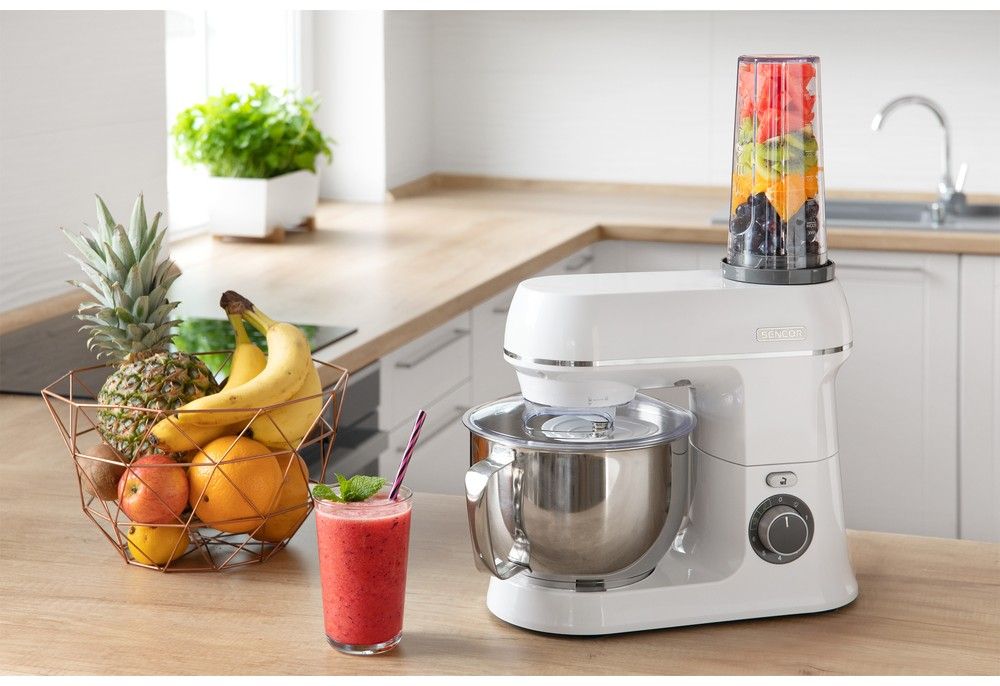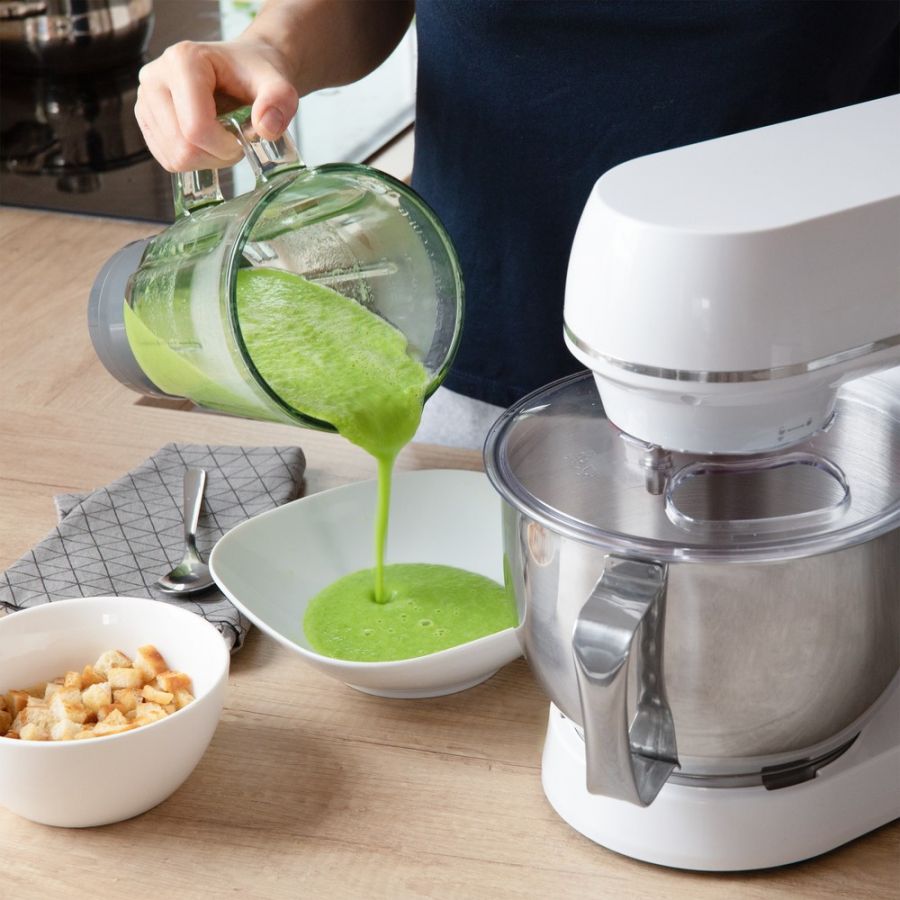 Kuchyňský robot má výkoný 1000 W motor s objemem nádoby 4 l. Pohodlnou nádobu na pití, speciální FLEXI šlehač a FLEXI metla, 2 NutriSmart programy.