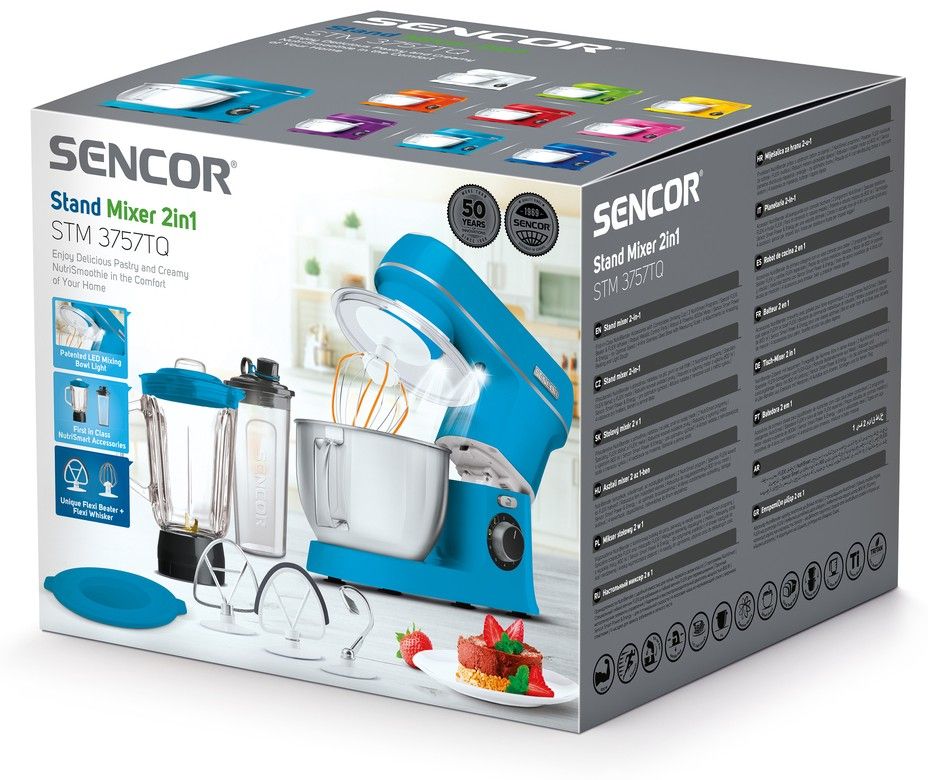 Kuchyňský robot má výkoný 800 W motor s objemem nádoby 4 l. Pohodlnou nádobu na pití, speciální FLEXI šlehač a FLEXI metla, 2 NutriSmart programy.