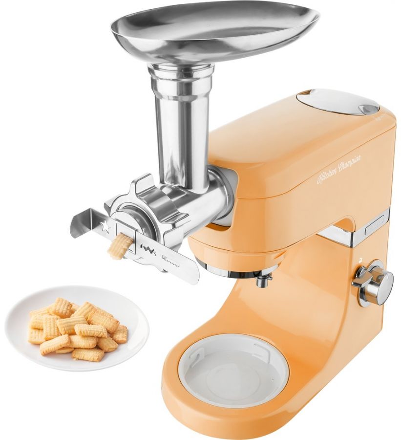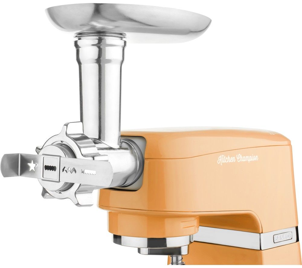 Kuchyňský robot má celokovové tělo s kovovými převody. Objem nerezové nádoby 4,5 l. Záruka 6 let na motor.