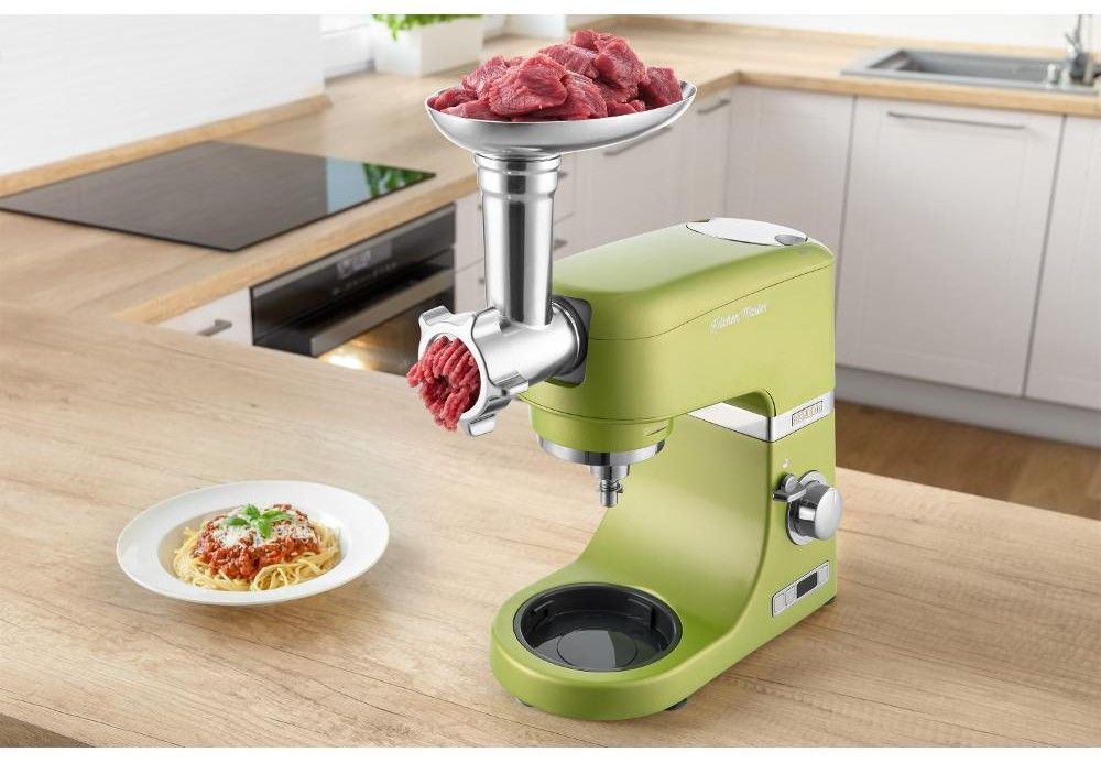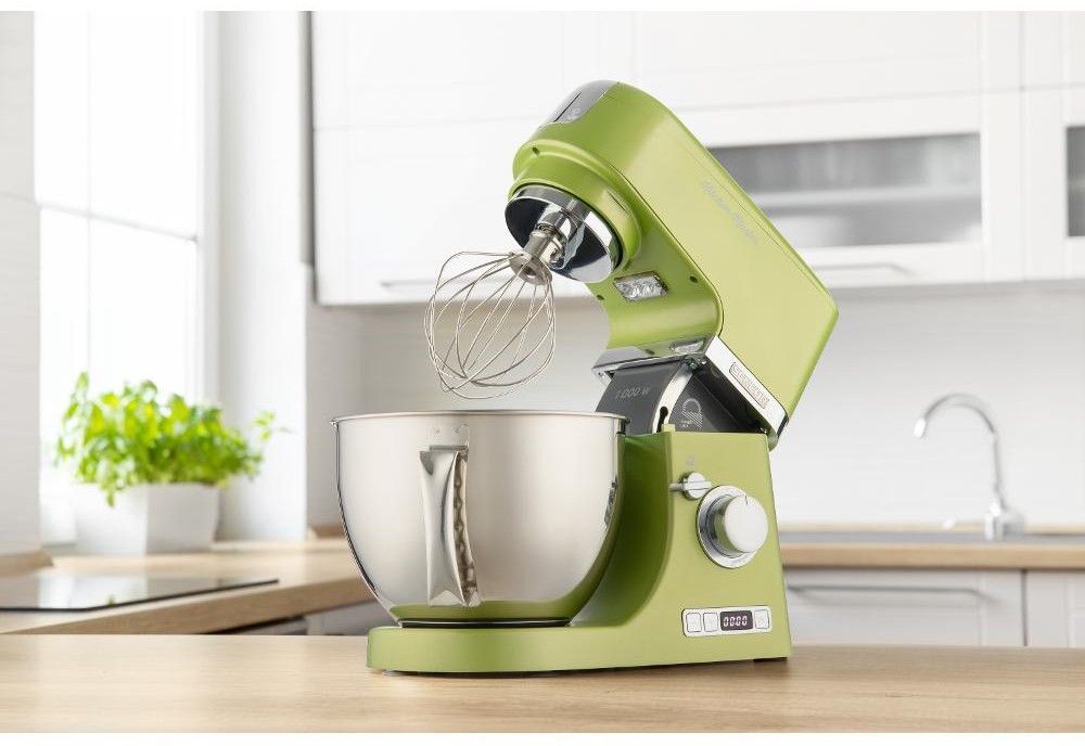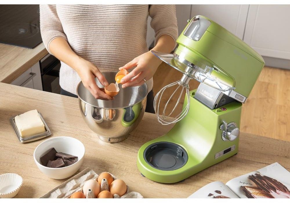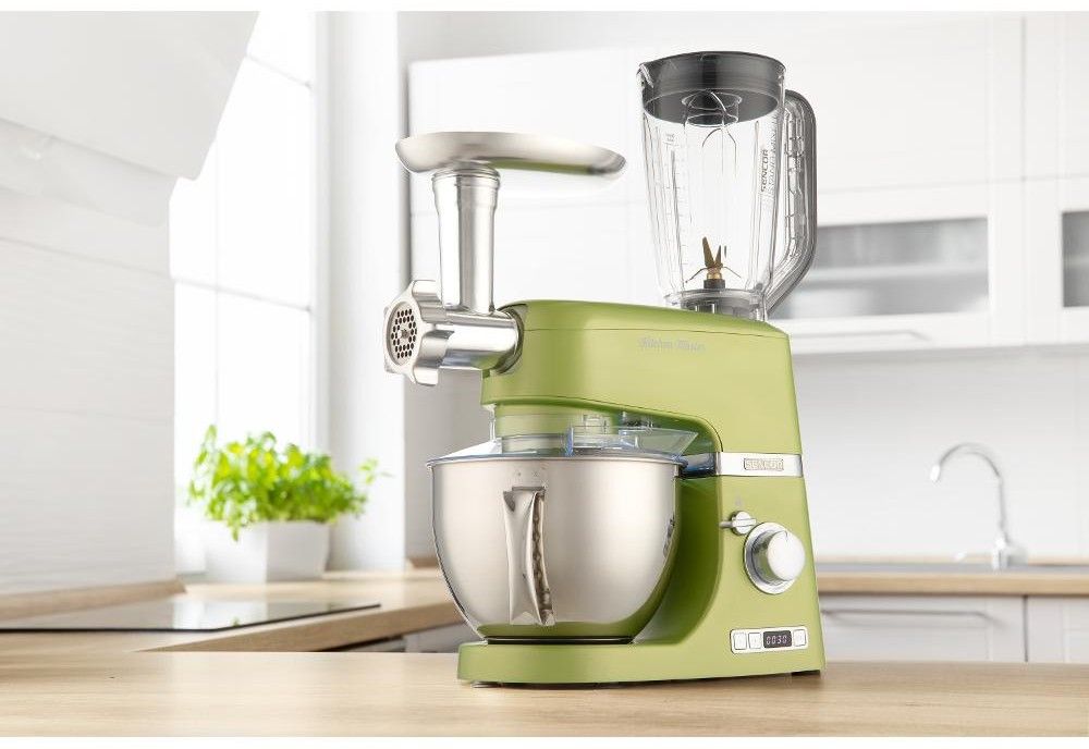 Kuchyňský robot má výkonný 1000 W motor s 4,5 l nerezovou nádobou s rukojetí a s měrnou stupnicí, 3 l nerezovou nádobu s měrnou stupnicí a 1,5 l mixér vyrobený z BPA FREE TRITANU.