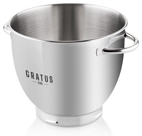 Nerezová mísa s praktickými držadly má objem 5,5 l, což vám bohatě vystačí pro až 2,5 kg těsta. K robotu ji upevníte velmi snadno a snadná je i údržba – nerezovou nádobu můžete mýt v myčce.
