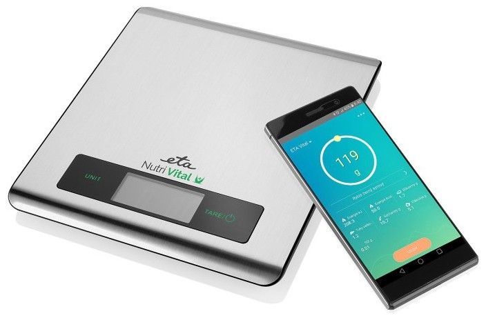 K maximálnímu využití funkcí chytré, nutriční váhy ETA NUTRI VITAL je zapotřebí chytrého telefonu tzv. smartphone, na kterém běží naše aplikace Nutri Vital. Jedině pomocí chytrého telefonu a této aplikace si lze přehledně hlídat skladbu vážených potravin. Bez chytrého telefonu a aplikace Nutri Vital váha plní pouze svou základní funkci – zobrazování hmotnosti potravin.