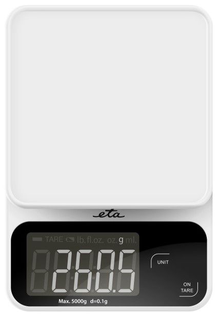 I gram může rozhodnout. Zvlášť když připravujete výběrovou kávu nebo ladíte chuť omáčky k dokonalosti. Digitální kuchyňská váha ETA Popi vás nezklame ani při těch nejpřesnějších úkonech – váží totiž s přesností na 0,1 gramu.