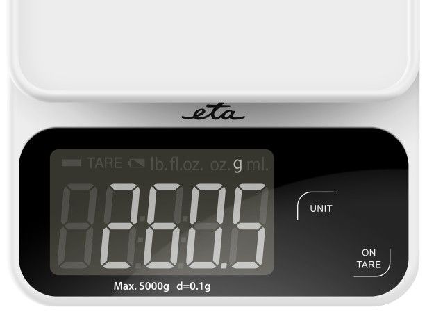Digitální kuchyňská váha ETA Popi zvládne vážit do 5 kg, přičemž si můžete zvolit jednotky – od gramů až po mililitry či unce. Přehledný LCD displej vám zřetelně zobrazí hmotnost, zatímco praktická funkce TARE umožní snadno dovažovat i více surovin v jedné nádobě.