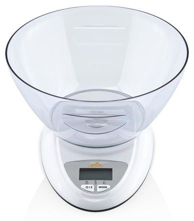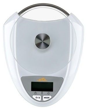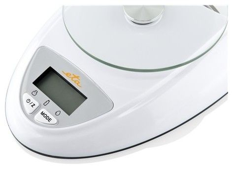 S digitální kuchyňskou váhou ETA Zori si navážíte jak sypké nebo pevné suroviny, tak i vodu nebo mléko. Můžete vážit v jednotkách gramů, mililitrů, liber nebo uncí. Maximální kapacita váhy je 5 kg s možností rozlišení na 1 gram. Plastová mísa o objemu 2 litry je odnímatelná. Přehledný LCD displej zobrazí naváženou hodnotu na dostatečně dlouhou dobu, to vám umožní pohodlně pokračovat v následném odměřování dalších surovin. Funkce TARE a nulování poslouží k postupnému dovažování, nebo odečtení hmotnosti nádoby.