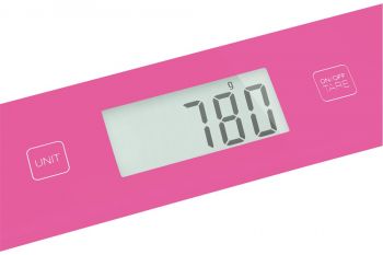 Barevná kuchyňská váha se skleněným povrchem a maximální nosností do 5 kg. Ultra slim design.