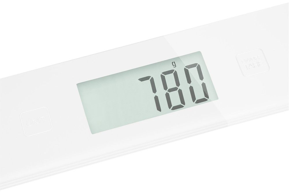 Barevná kuchyňská váha se skleněným povrchem a maximální nosností do 5 kg. Ultra slim design.