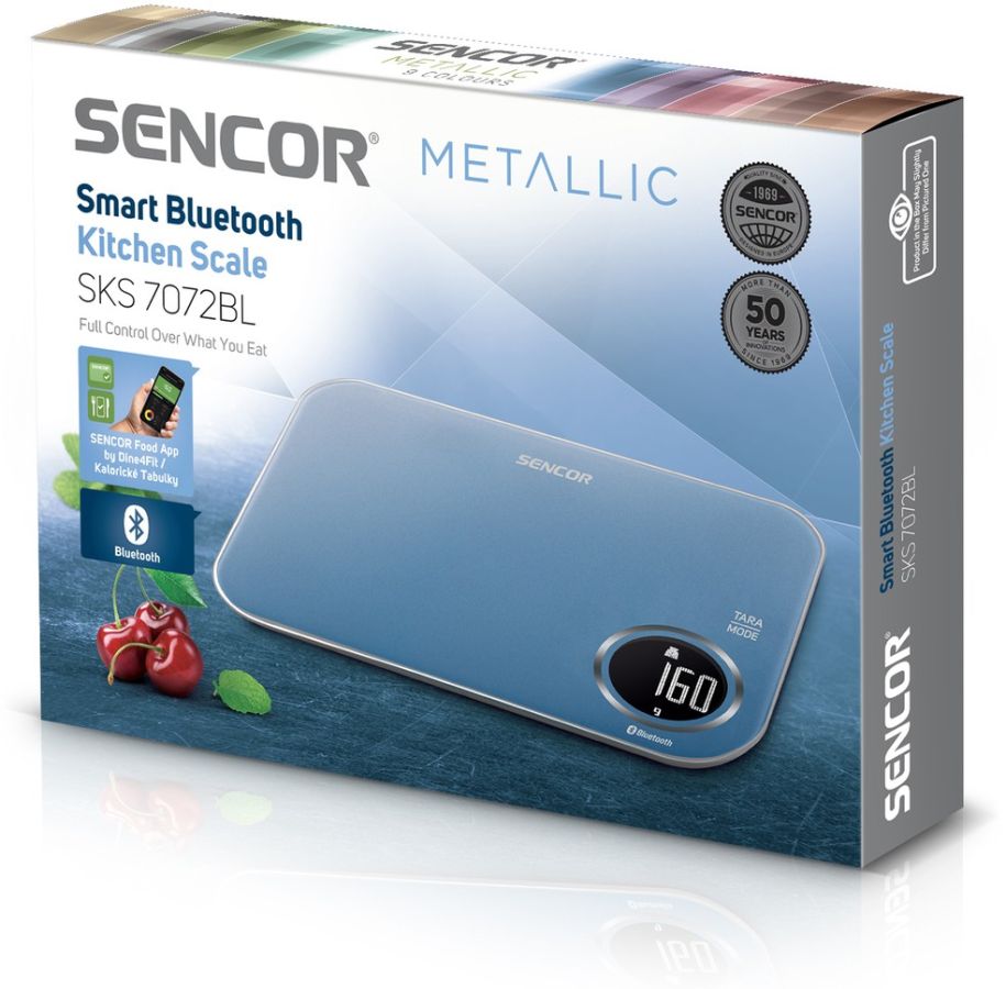 Chytrá kuchyňská váha s Bluetooth SKS 7072BL od značky Sencor vyčnívá díky originální aplikaci Sencor FOOD. Ta vás snadno spojí s největší možnou databází potravin. S její pomocí si mohou sportovci i zastánci zdravého životního stylu vést přehled o kalorickém příjmu a nutričním složení potravin. Váha nabízí konkrétní přehled poměru výživových složek jednotlivých surovin, a tak ji uvítají také ti, kteří mají určitá zdravotní omezení co se stravy týče. Kolik sacharidů obsahuje jeden kus konkrétního ovoce? Kolik bílkovin či tuků se ukrývá v jednom pořádném steaku? To vám váha sdělí naprosto přesně. I proto bude správnou volbou pro ty, kdo žijí zdravě, nebo ty, kteří se rozhodli zhubnout.