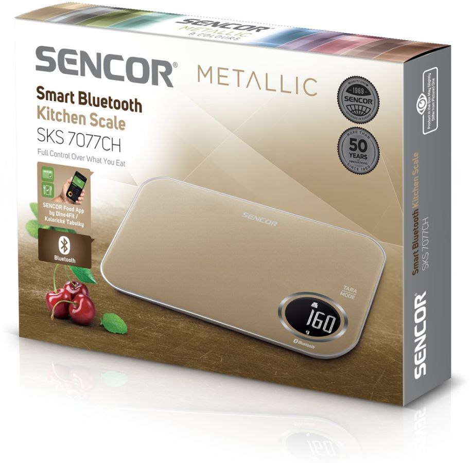 SENCOR SKS7076GD zlatáChytrá kuchyňská váha s Bluetooth, LCD displejem a nosností do 5 kg.SKS7076GD zlatá826 bez DPH999 Kč