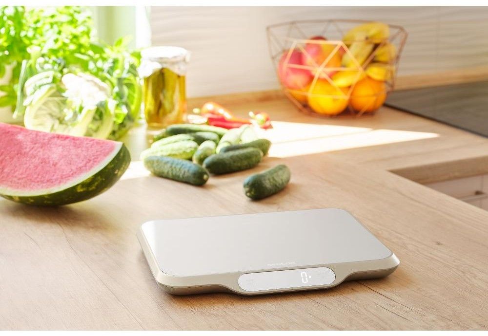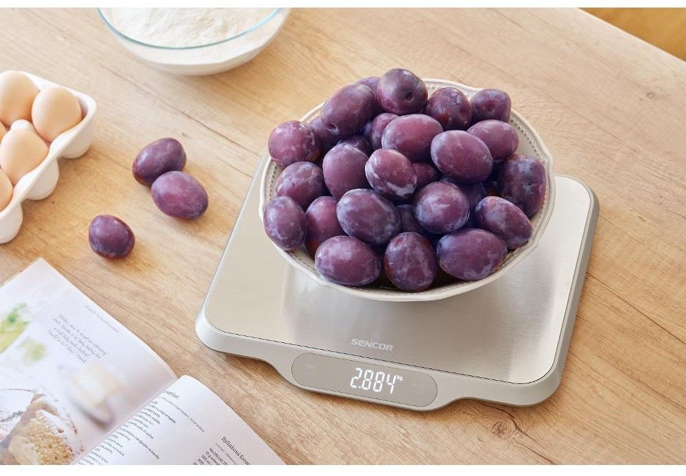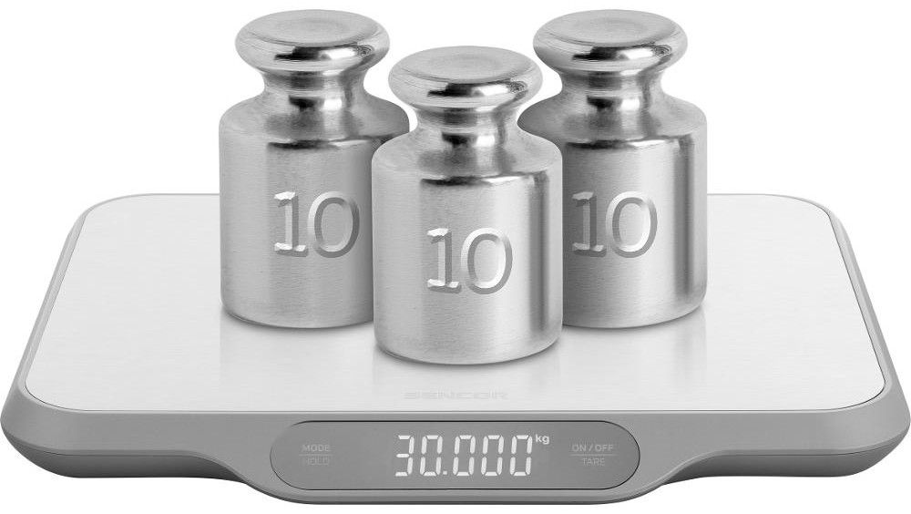 Kuchyňská váha s nerezovým povrchem, velkým LCD displejem, nosností do 30 kg a funkcí Tare & Hold.
