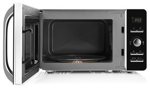 Mikrovlnná trouba Gavento s vnitřním objemem 20 l a s rovnoměrným šířením mikrovln, které si můžete nastavit v rozmezí 8-mi stupňů od rozmrazování až po vaření.