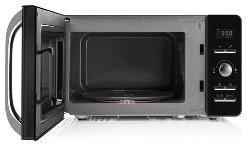 Mikrovlnná trouba Gavento s vnitřním objemem 20 l a s rovnoměrným šířením mikrovln, které si můžete nastavit v rozmezí 8-mi stupňů od rozmrazování až po vaření.