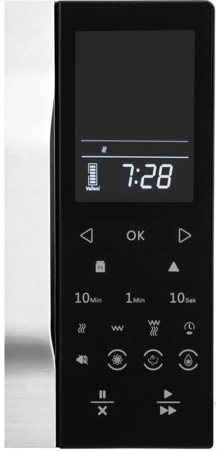 Mikrovlnná trouba s grilem s vnitřním objemem 25 l. Má 14 automatických programů a 6 úrovní výkonu.