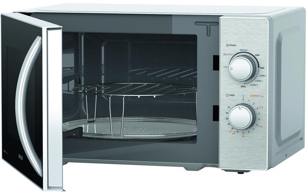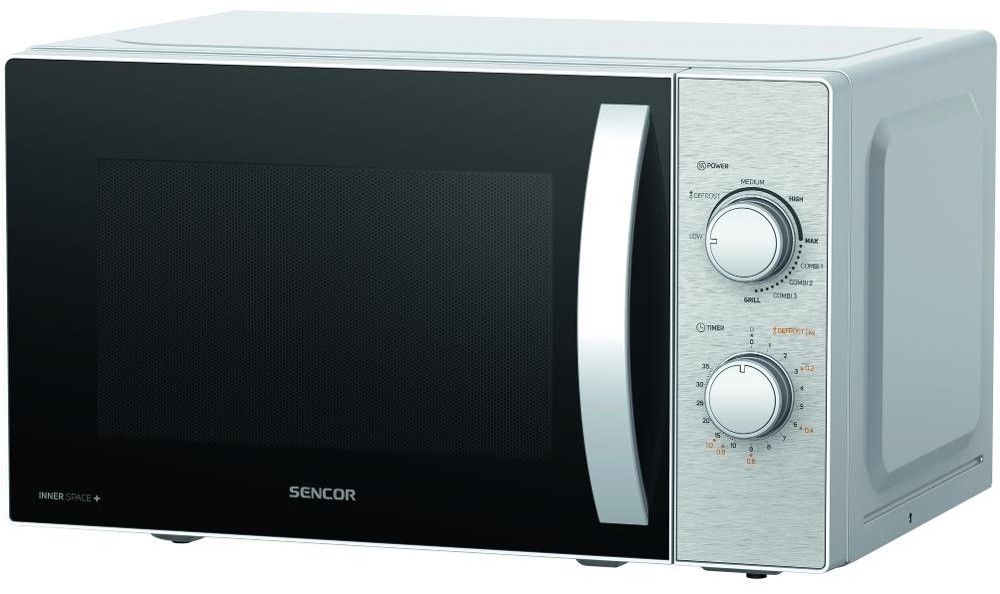 Mikrovlnná trouba s grilem s vnitřním objemem 20 l, 5-ti úrovněmi mikrovlnného výkonu a funkcí rychlého a hygienického rozmrazení.