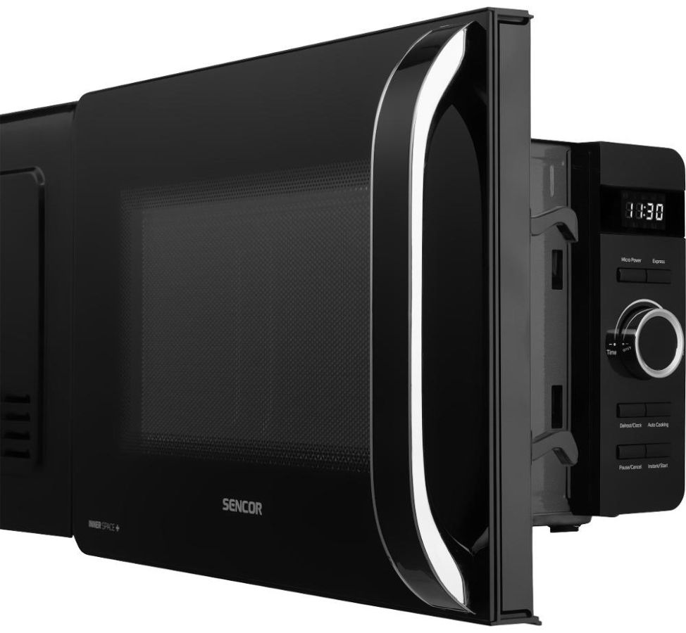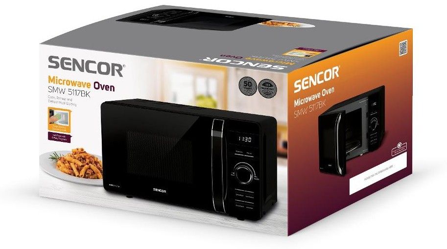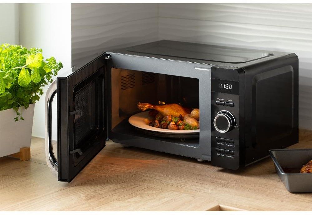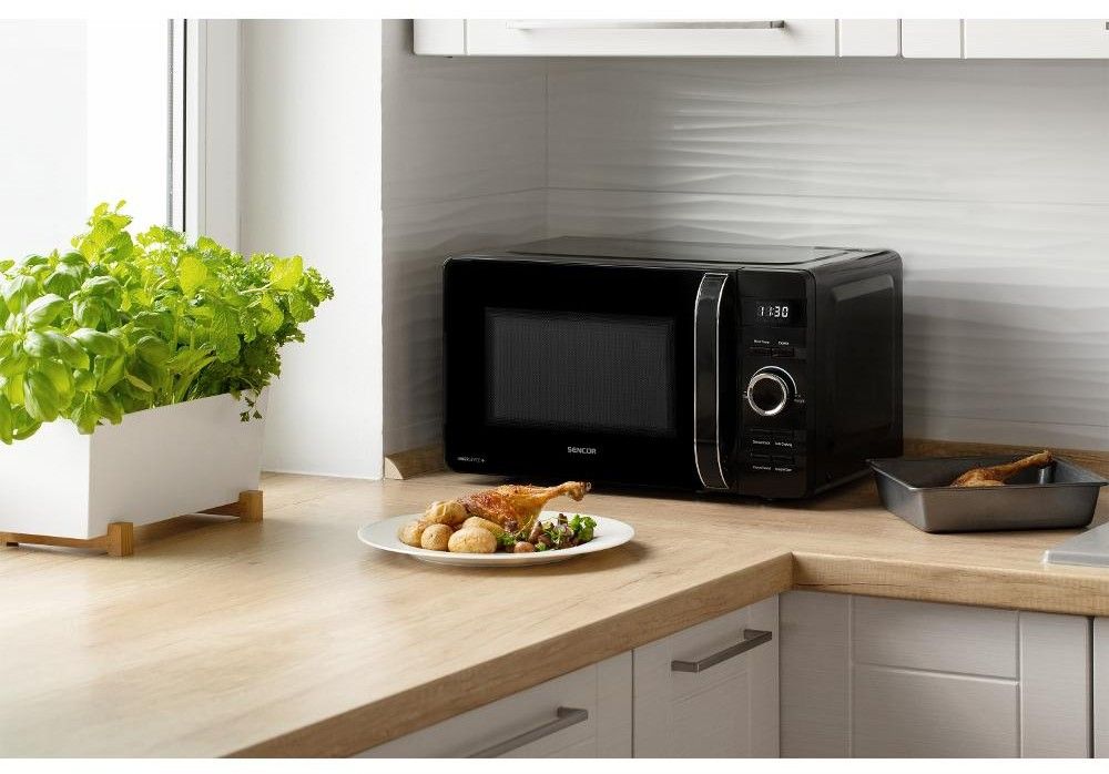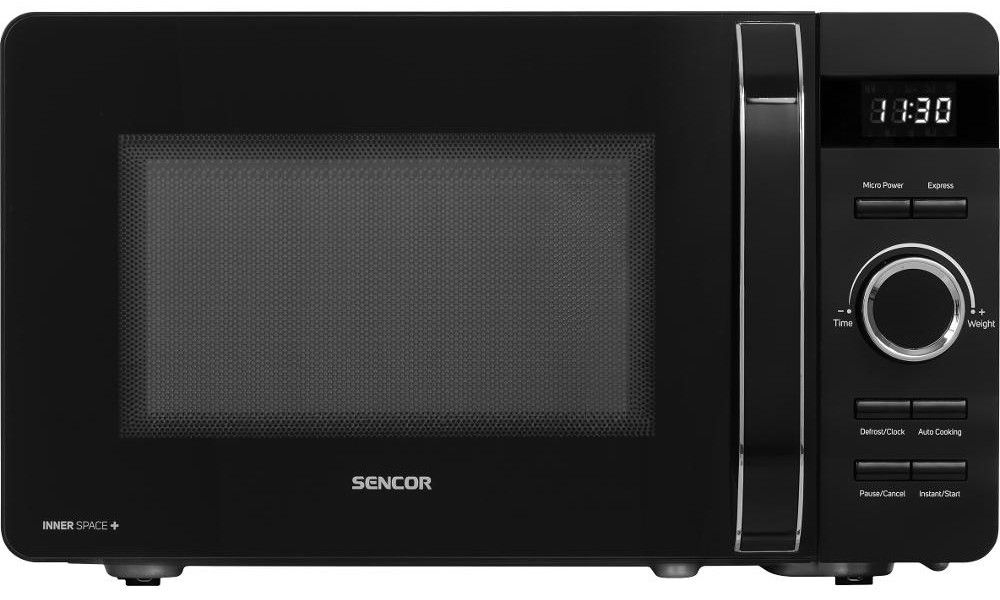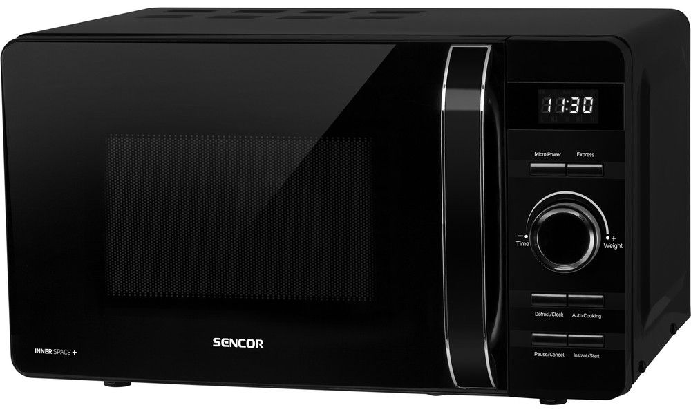 Mikrovlnná trouba s vnitřním objemem 17 l, 8-mi programy a 5-ti úrovněmi mikrovlnného výkonu.
