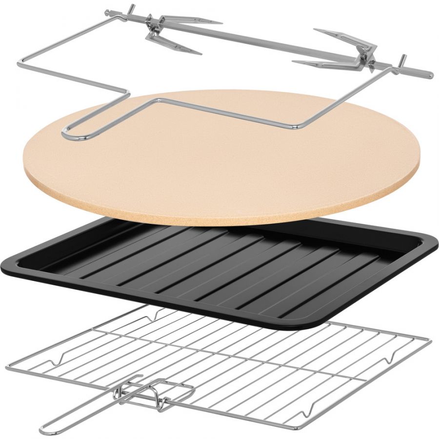 K příslušenství trouby patří také pizza kámen sloužící k přípravě pizzy i jiných slaných koláčů, ale také k pečení cukroví, sušenek nebo chleba. Jeho výjimečnost tkví v mikroskopických pórech, které pohlcují vlhkost těsta a následně ji uvolňují. Tento princip napomáhá udržovat vysokou teplotu v troubě a také odstiňuje přímý žár spodní spirály. Díky tomu bude pizza dokonale křupavá i rovnoměrně propečená. Pizza kámen nepotřebuje žádnou úpravu před přípravou, stačí na něj položit pečicí papír bez použití oleje či tuku. Vždy se vkládá do nevyhřáté trouby, aby nepopraskal.