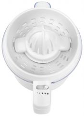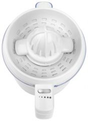 Do nádoby můžete vymačkat až litr citrusového extraktu. Jeho aktuální objem ukazuje vodoznak na přední straně. Nálevkou pak přelejete do sklenice. Citrusovač Limono má 2 trny pro lepší přizpůsobení k velikosti lisovaného plodu. Nastavit si můžete také velikost otvorů síta a vybrat hustotu šťávy. Je zde i oboustranný automatický chod. Pro případ uchování vylisované šťávy je součástí i víko na zakrytí nádoby.