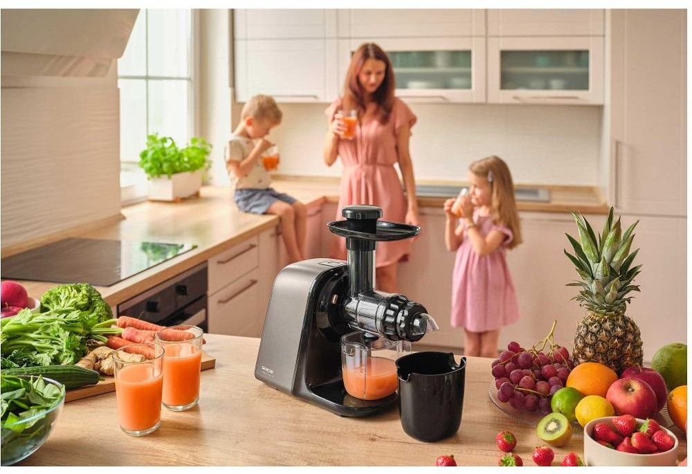 S pomocí šnekového odšťavňovače SSJ 0900BK s nízko-otáčkovým systémem zvládnete šetrně odšťavnit většinu druhů ovoce i zeleniny. Z každého plodu dostane maximum šťávy s vysokým obsahem vitamínů a minimem pěny pro přípravu dokonalého a osvěžujícího džusu.