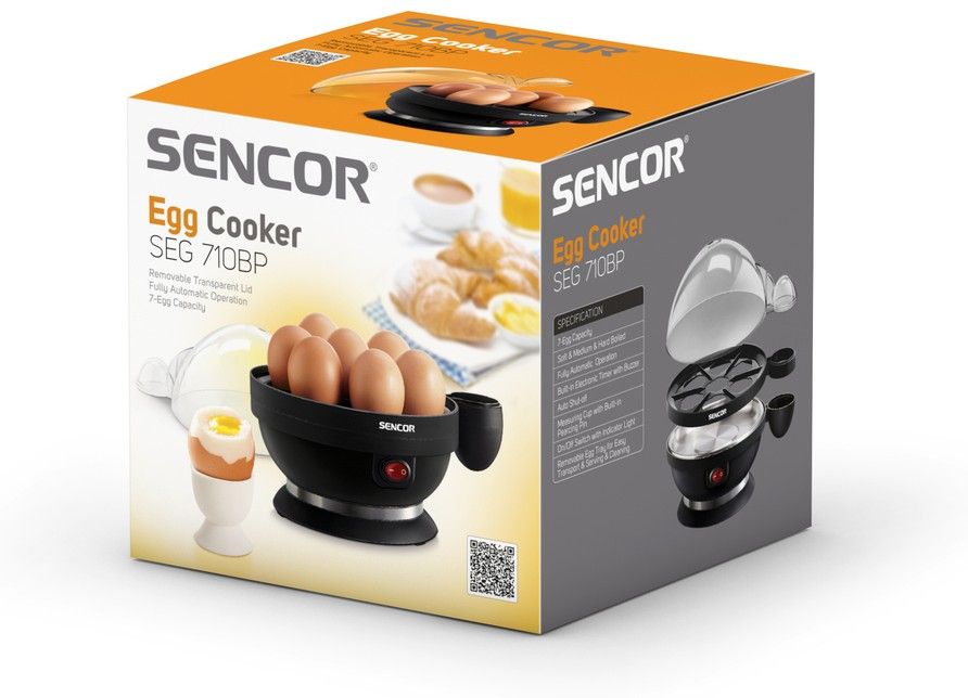 Vařič vajec s kapacitou až 7 vajec. Má 3 stupně vaření - naměkko, středně vařené nebo natvrdo.