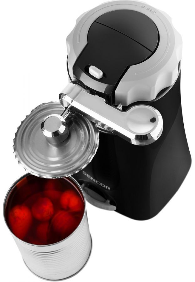 Multifunkční elektrický otvírač konzerv s 6 funkcemi.